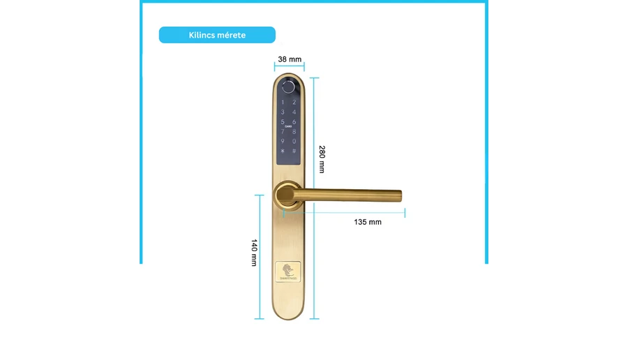 Technikai adatok ANYAGA Rozsdamentes acél SZÍNE Fekete AJTÓ VASTAGSÁG Az alapcsomag 40 - 70 mm esetén megfelelő. Más ajtóvastagság esetén kiegészítő elemekre van szükség. AJTÓ TÍPUS Beltéri / Kültéri KILINCS IRÁNYA Jobb / Bal ELEM TÍPUSA ÉS DARABSZÁMA 4 db AAA IP VÉDELEM 65 TERMÉK SÚLYA 1.63 kg TELEFONOS ALKALMAZÁS TTLock - ingyenes alkalmazás, elérhető Android és iOS operációs rendszereken