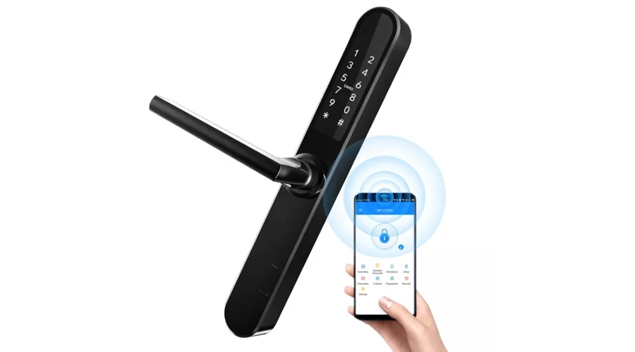 - Bluetooth-on keresztül telefonról - a telefon és a kilincs egyidőben 2-3 méteren belül kell legyen, ez változhat különböző tényezőktől, mint például falak és azok vastagsága, bútorok elhelyezése, mennyisége