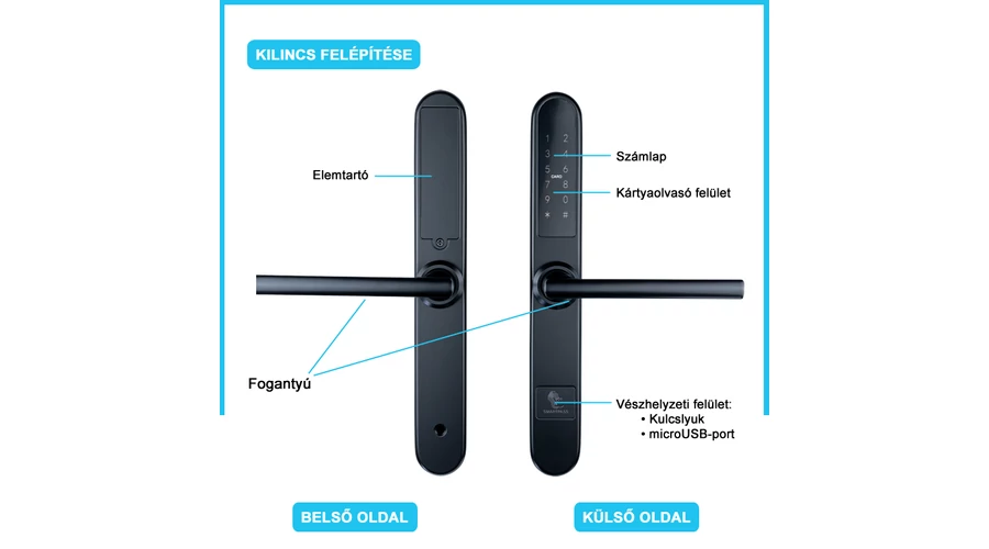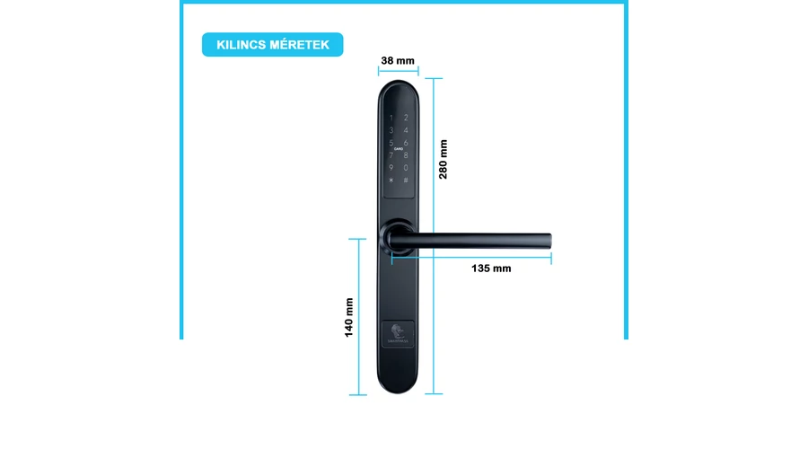 Technikai adatok ANYAGA Rozsdamentes acél SZÍNE Fekete AJTÓ VASTAGSÁG Az alapcsomag 40 - 70 mm esetén megfelelő. Más ajtóvastagság esetén kiegészítő elemekre van szükség. AJTÓ TÍPUS Beltéri / Kültéri KILINCS IRÁNYA Jobb / Bal ELEM TÍPUSA ÉS DARABSZÁMA 4 db AAA IP VÉDELEM 65 TERMÉK SÚLYA 1.63 kg TELEFONOS ALKALMAZÁS TTLock - ingyenes alkalmazás, elérhető Android és iOS operációs rendszereken